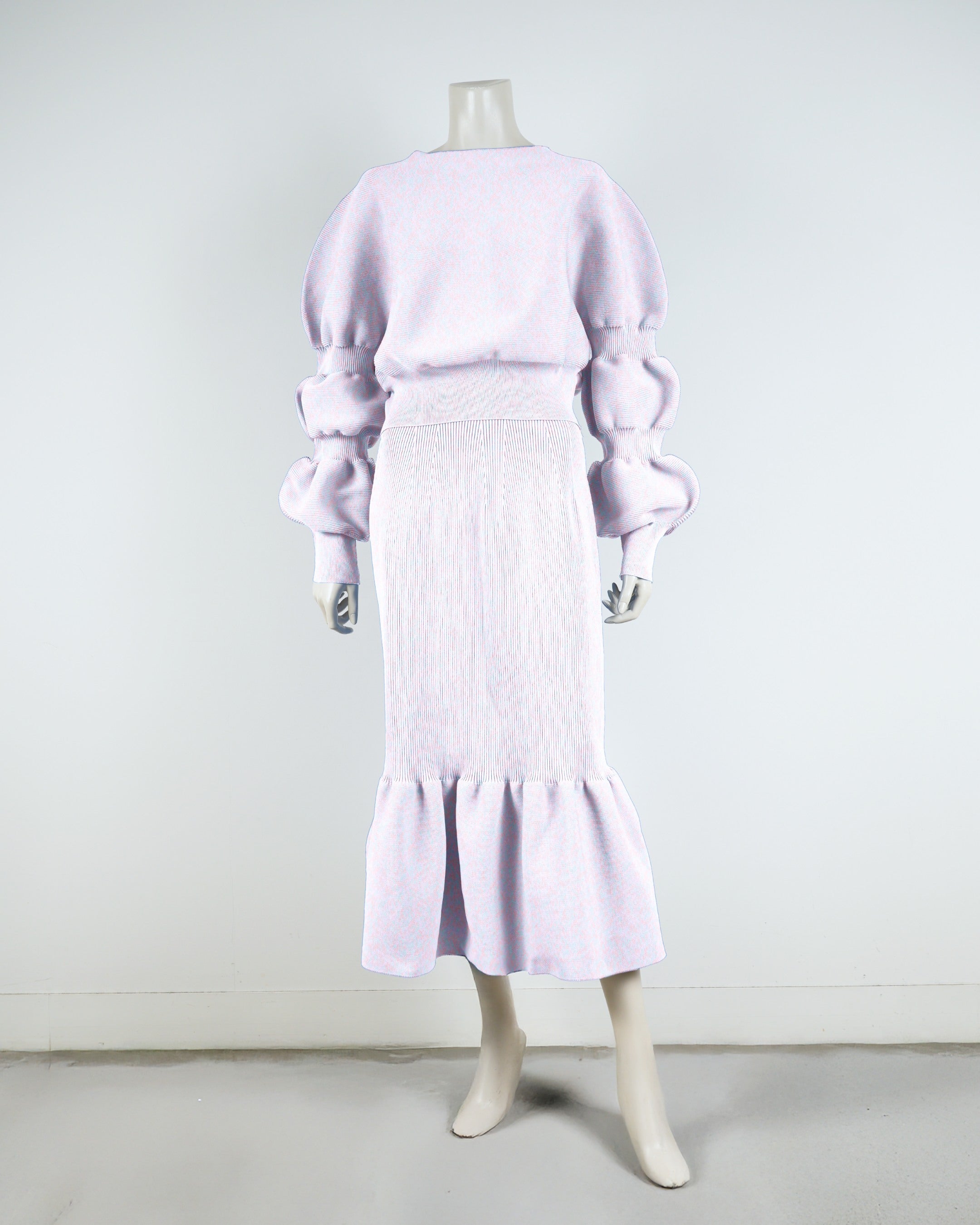 長袖リブ×コクーンスカート【返品交換対象商品】