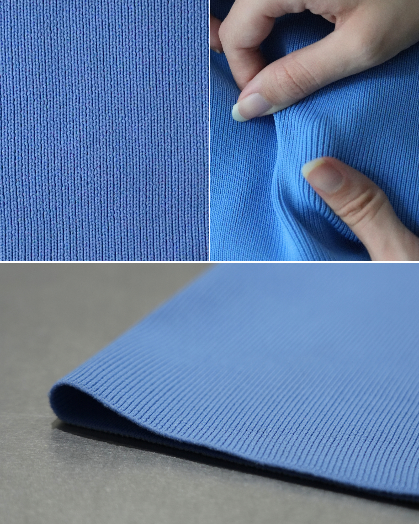 すべて無縫製のニットなので伸縮性と着心地の良さが特徴です。日本製のポリエステル100%を使用しているため軽く、耐久性に優れまています。