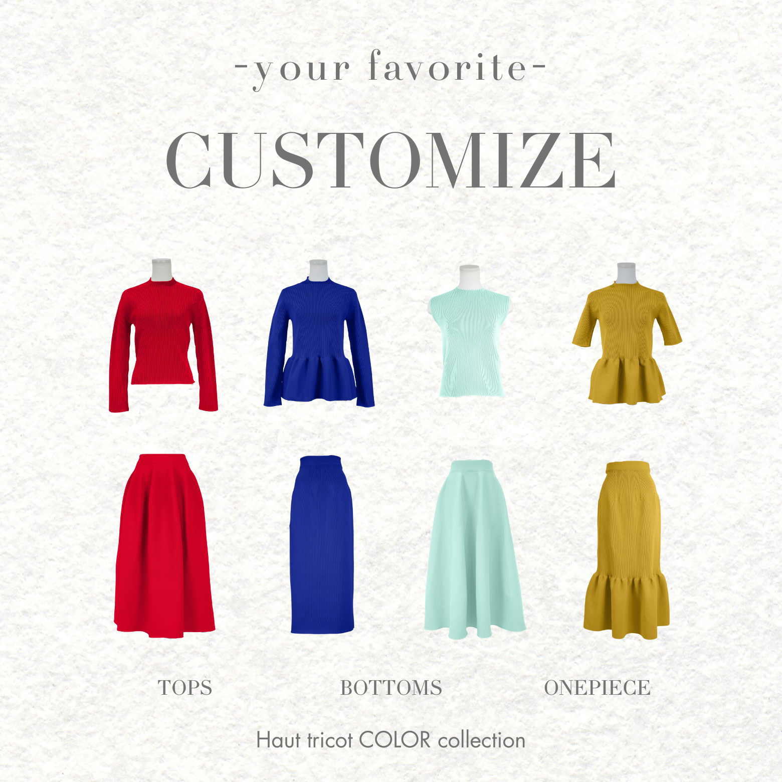 一番人気はワンピースライクに着れるセットアップ。参考に載せている組み合わせ以外に、好きなトップスとボトムスの組み合わせで、オーダー可能です。